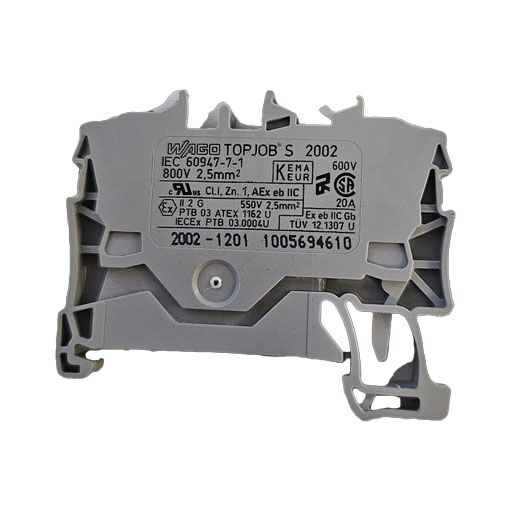 Item 2002-1201 is a rail mount (Din 35) terminal block that features a compact size of just 5.2 mm, which allows easy installation in space-constrained environments. This terminal also provides a convenient solution for various wiring tasks as it supports 2-conductor connections.