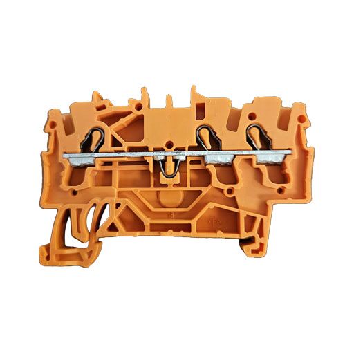 Description: Feedthrough Terminal Block, 3 Conductor, 5.2mm, Rail Mount, Orange