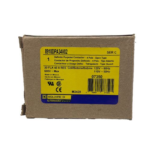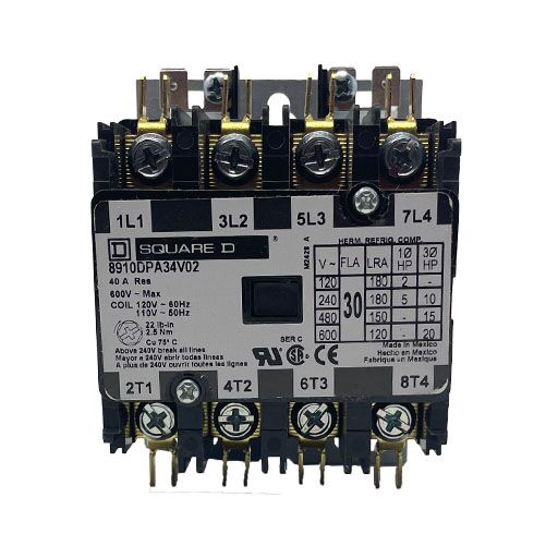 8910DPA34V02 – Square-D – Contactor 30 Amp, 4 Pole, 120V Coil