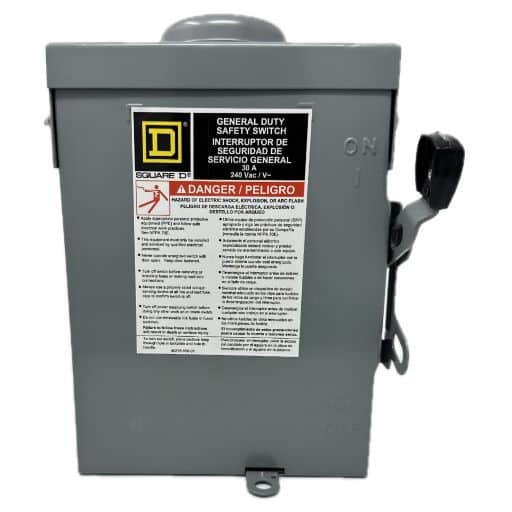 DU221RB – Schneider Electric – Disconnect Switch, Non-Fusible Nema-3R 30 Amp, 240 Volt, 2 Pole